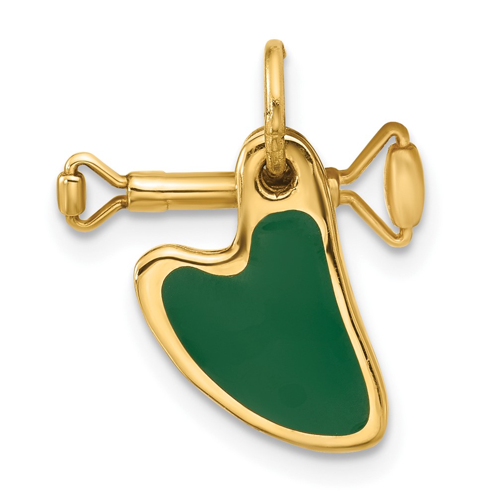 14k Fancy Green Enameled Gua Sha with Facial Roller Charm
