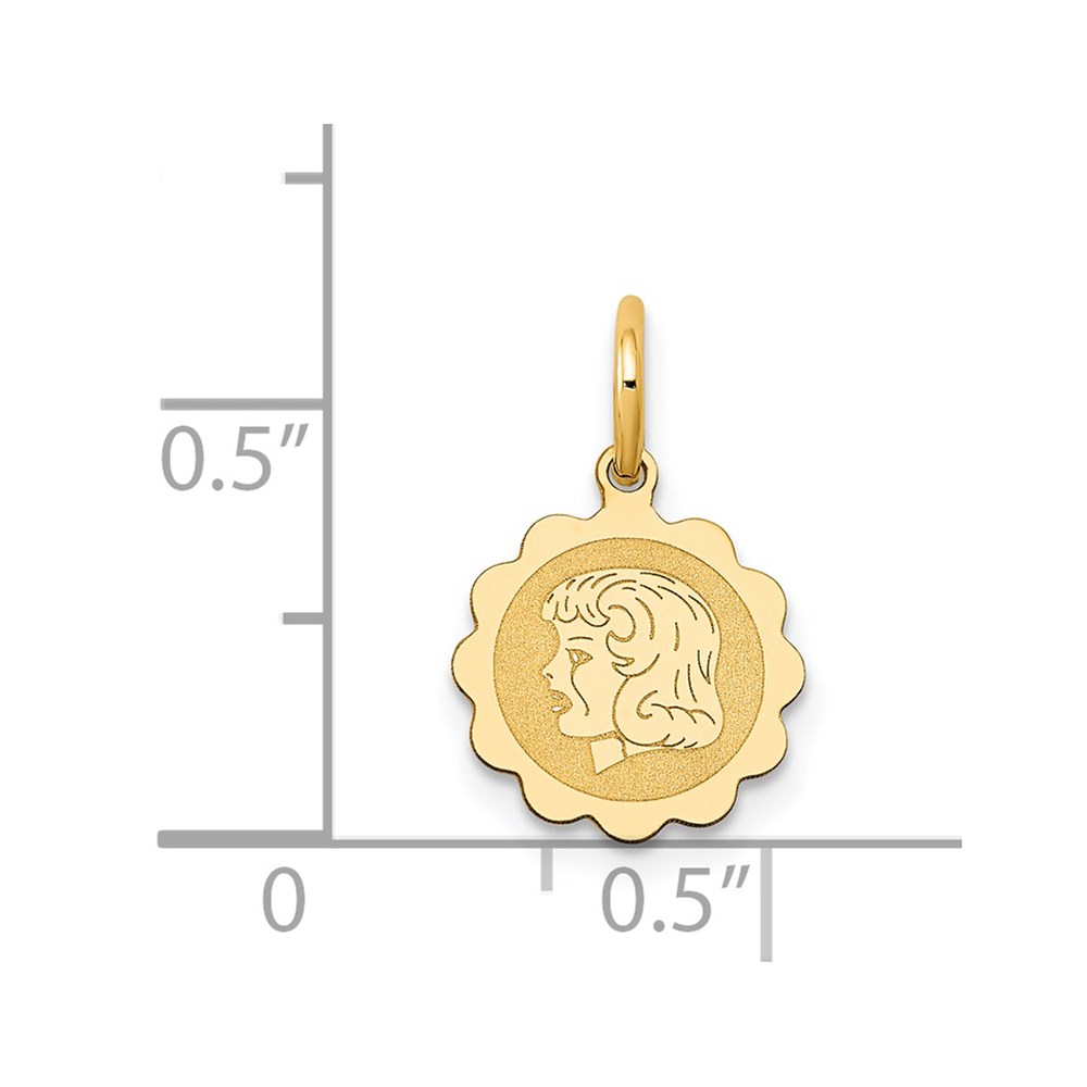 14k Girl Head on .009 Gauge 10mm Engravable Scalloped Disc Charm