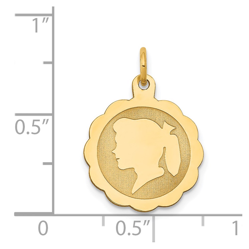 14k Girl Head on .011 Gauge Engravable Scalloped 17x15mm Disc Charm