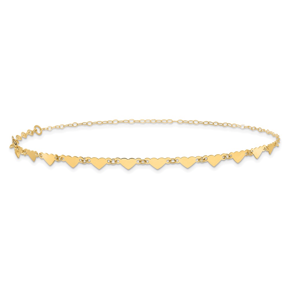 14K Polished Heart-in-Heart Links 3-Station Plus Extender – Total Anklet