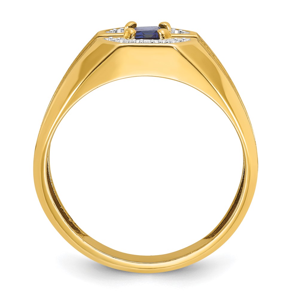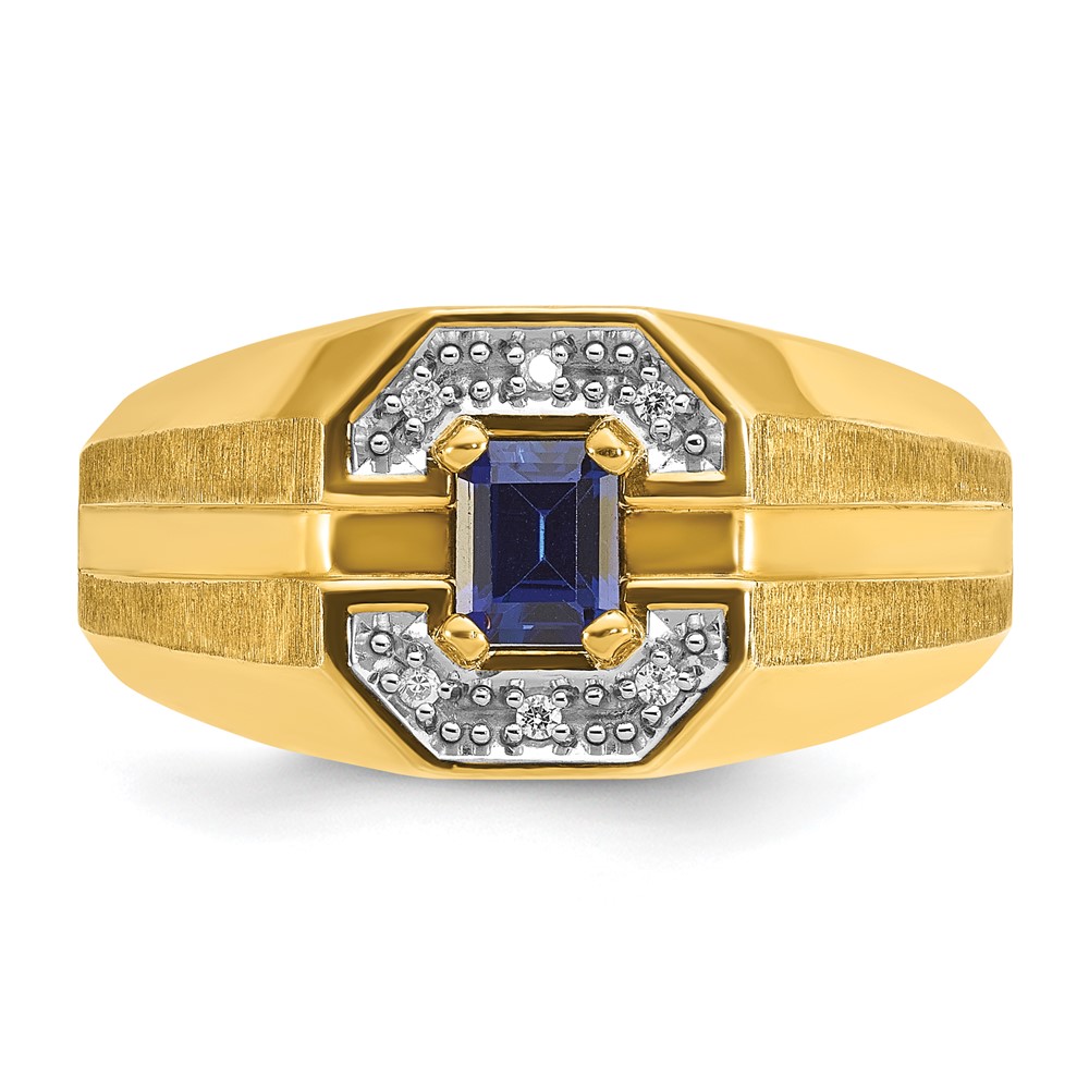 14k IBGoodman Men's Created Sapphire and 1/20 carat Diamond Satin Complete Ring