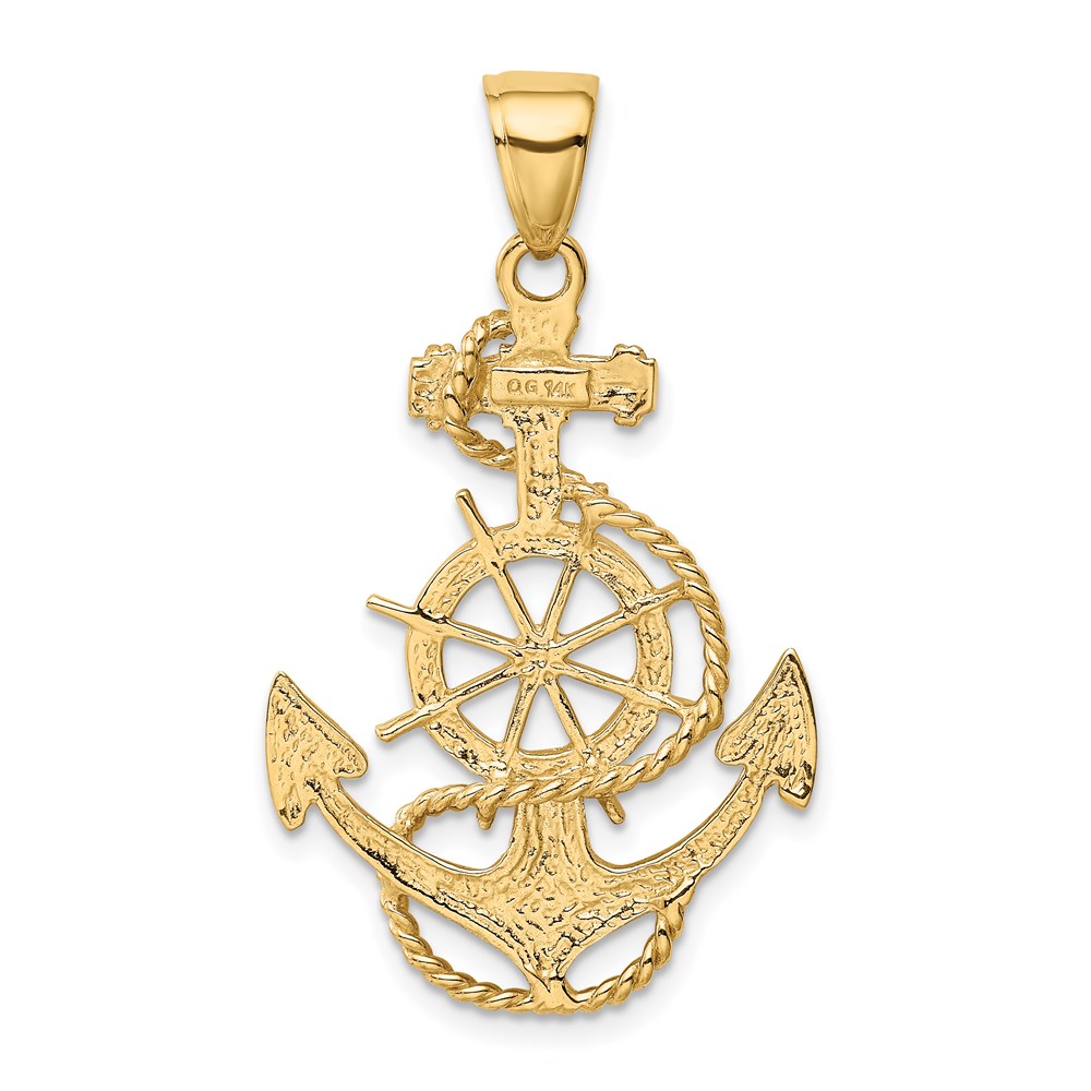 14k Large Anchor and Ships Wheel with Rope Pendant
