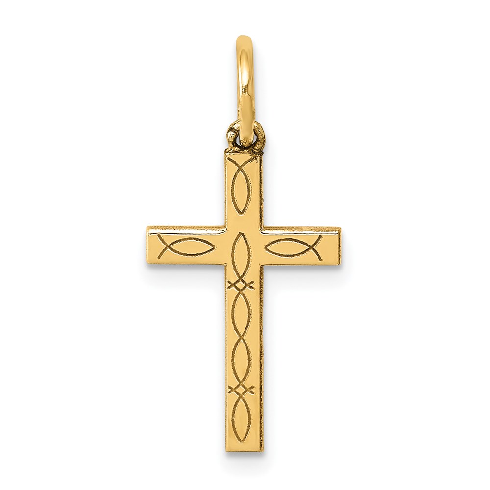 14K Laser Cut Ichthus Cross Charm