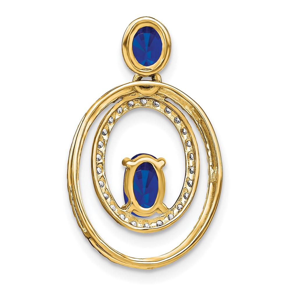 14k Oval and Round Sapphire and Diamond Oval Pendant