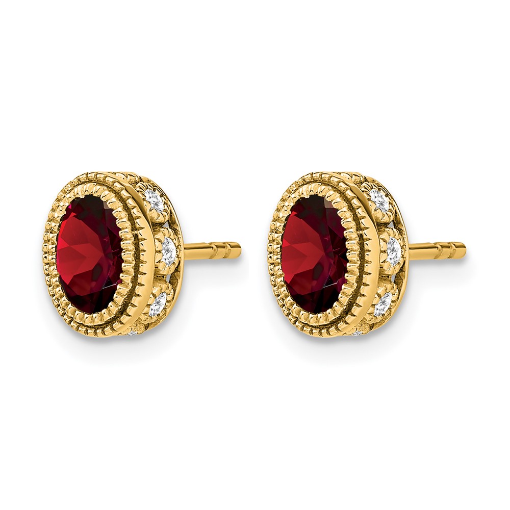 14k Oval Garnet and Diamond Earrings