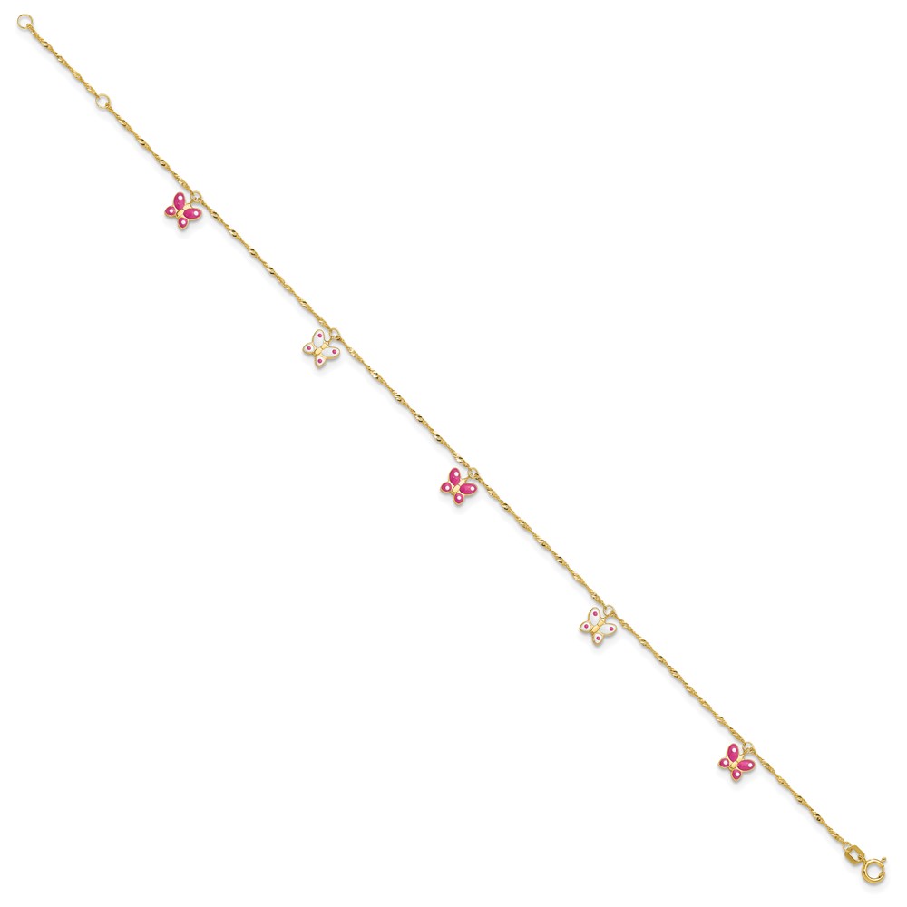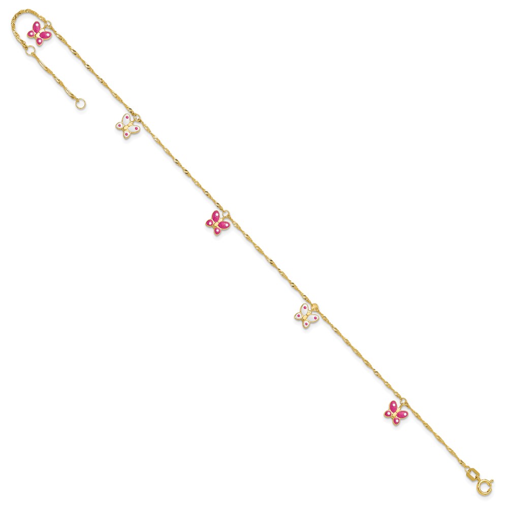 14k Pink and White Enameled Butterfly Dangles Plus Extender – Total Anklet