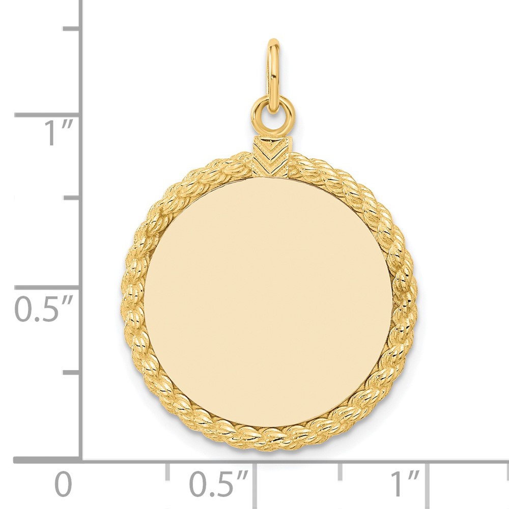 14k Plain .013 Gauge Round Engravable 20.3×18.6mm Disc with Rope Edge Charm