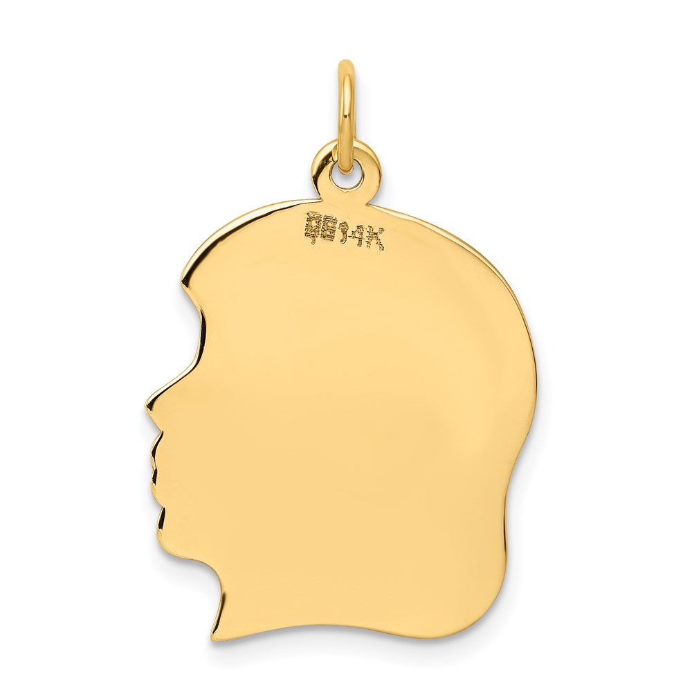 14k Plain Large .009 Gauge Facing Right Engravable Girl Head Charm