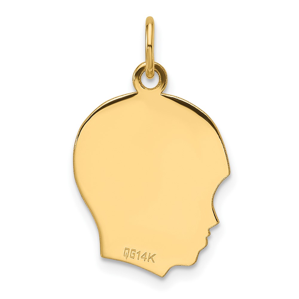 14k Plain Medium .035 Gauge Facing Right Engravable Boy Head Charm