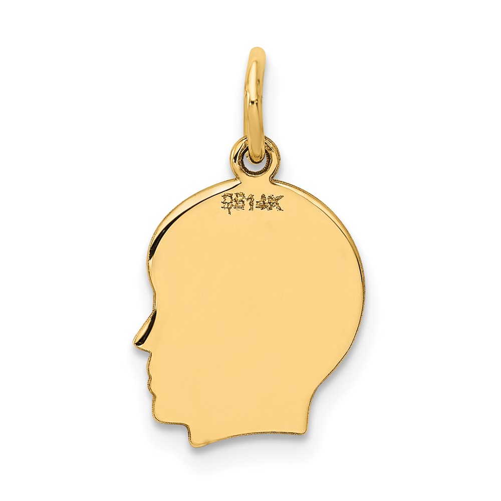 14k Plain Small .009 Gauge Facing Right Engravable Boy Head Charm