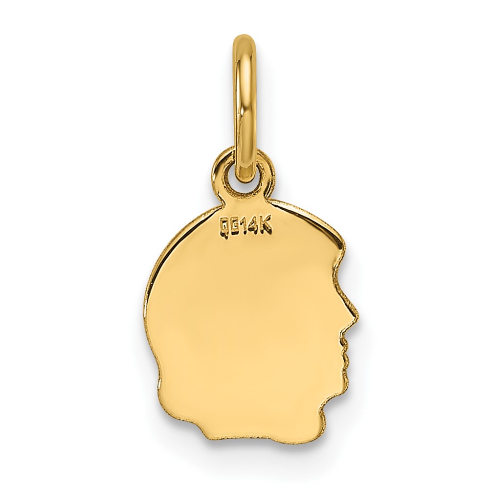 14k Plain Small .013 Gauge Facing Left Engravable Girl Head Charm