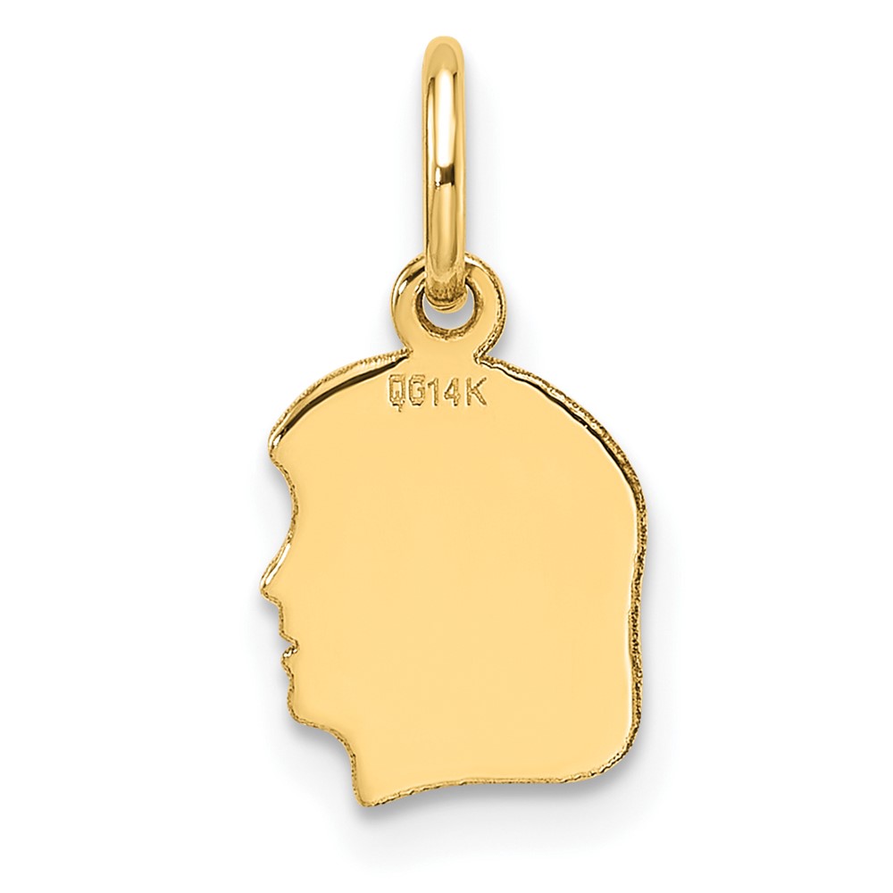 14k Plain Small .013 Gauge Facing Right Engravable Girl Head Charm