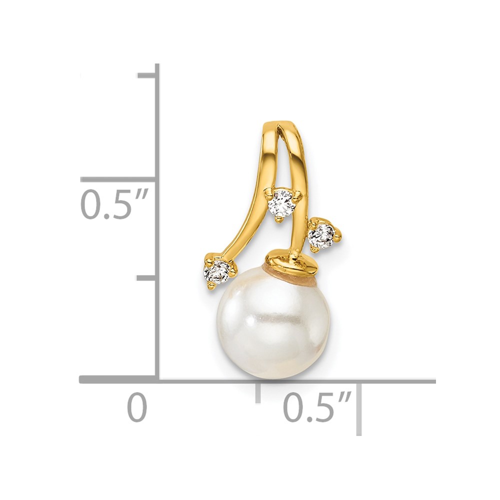 14K Polished 1/15 carat Diamond and White Freshwater Cultured Pearl Chain Slide