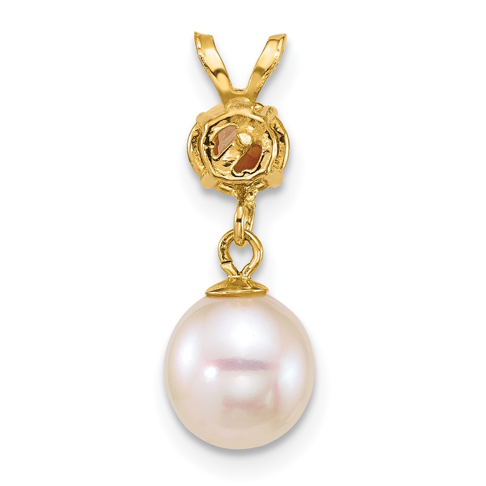 14K Rose Gold Polished 1/20 carat Diamond and White Freshwater Cultured Pearl Pendant