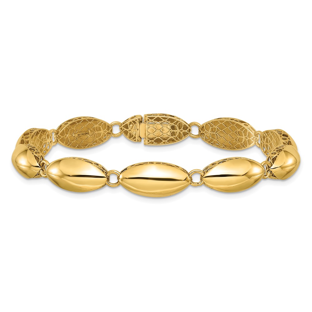 14k Polished 8.2mm Fancy Oval Link 7.5 inch Bracelet