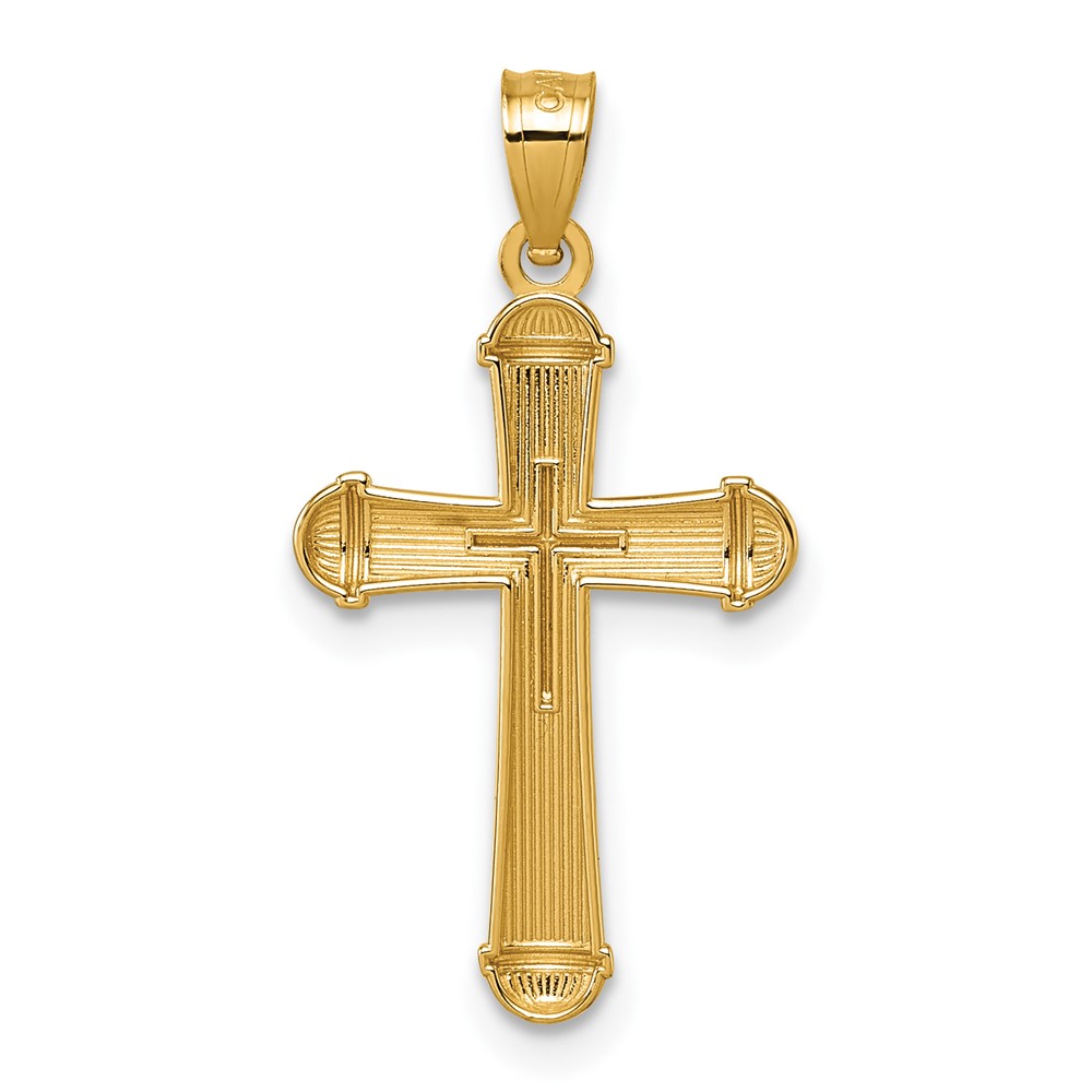 14k Polished and Diamond-cut Grooved Hollow Back Cross Pendant