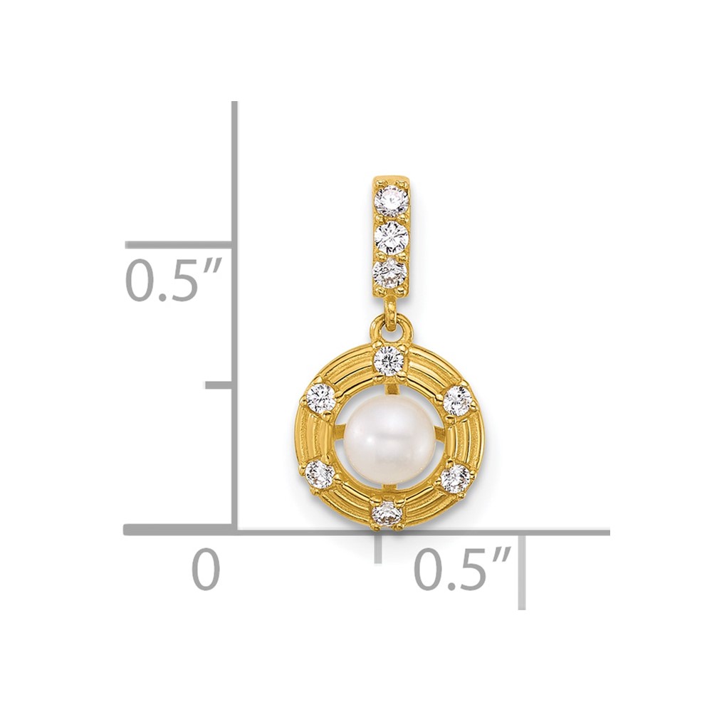 14k Polished and Grooved White Freshwater Cultured Pearl and CZ Circle Pendant