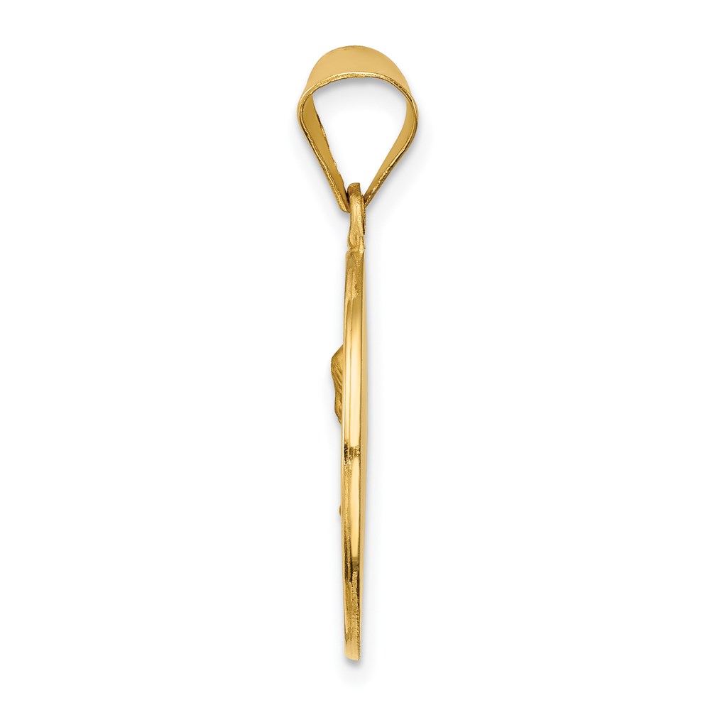 14k Polished and Satin Hollow Sacred Heart of Mary Medal Round Pendant