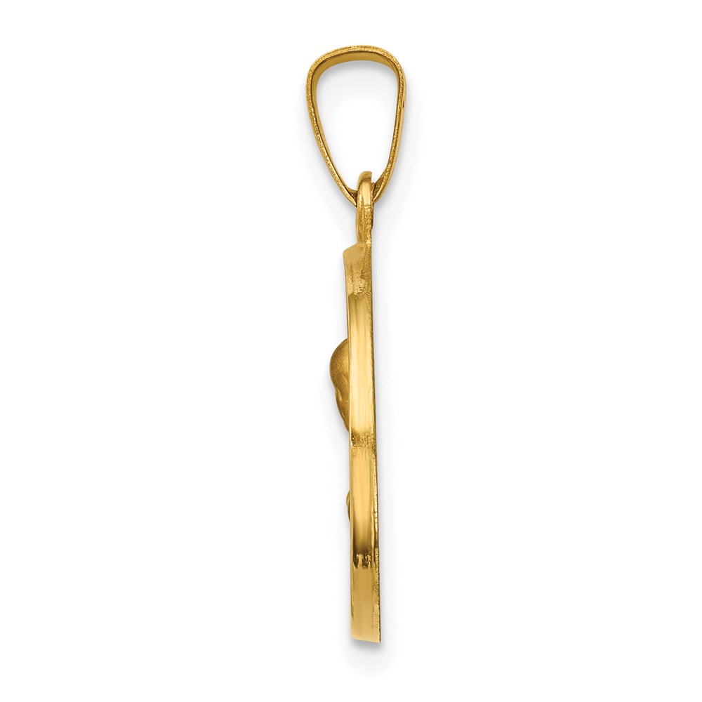 14k Polished and Satin Hollow Sacred Heart of Mary Medal Round Pendant