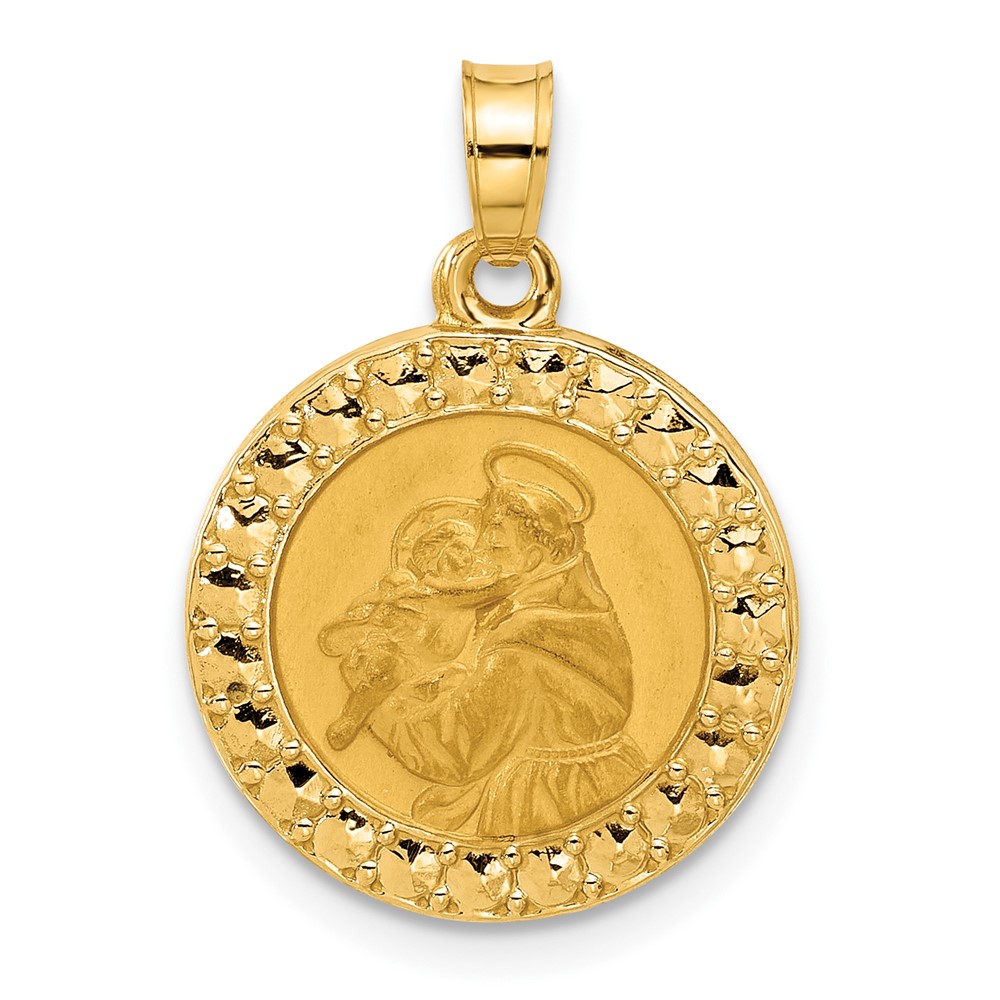 14K Polished and Satin Hollow St Anthony Medal Round Pendant