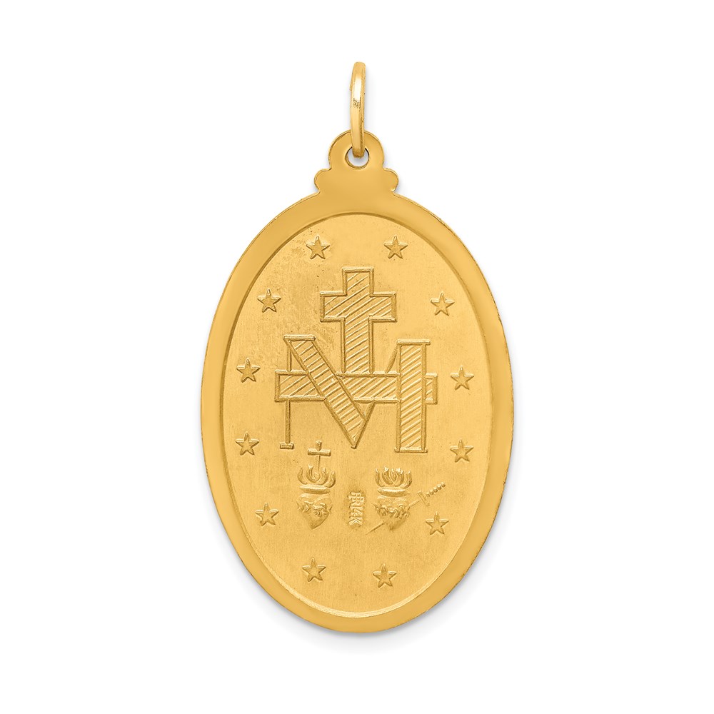 14k Polished and Satin Solid Large Miraculous Medal Oval Pendant