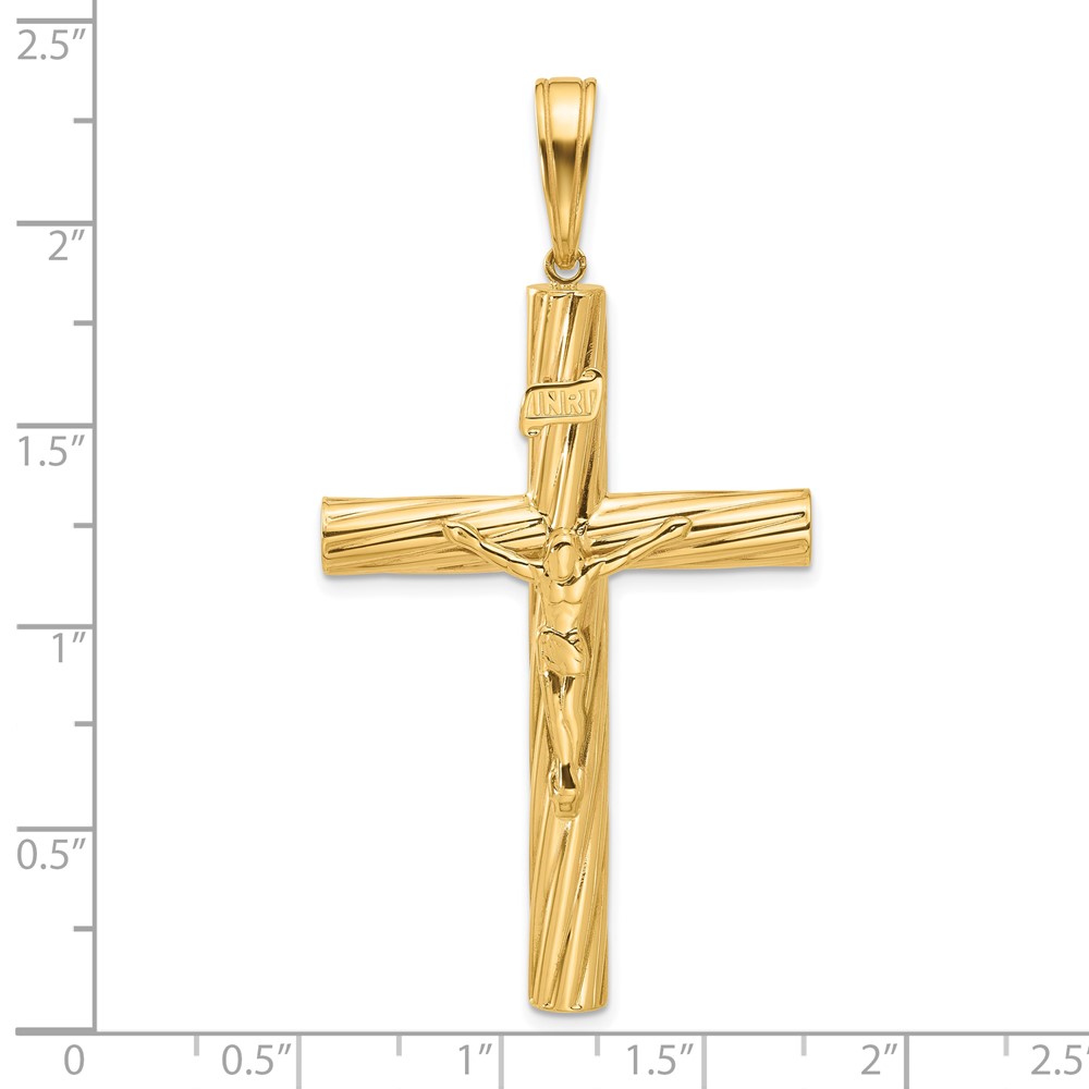 14K Polished and Textured Crucifix Pendant