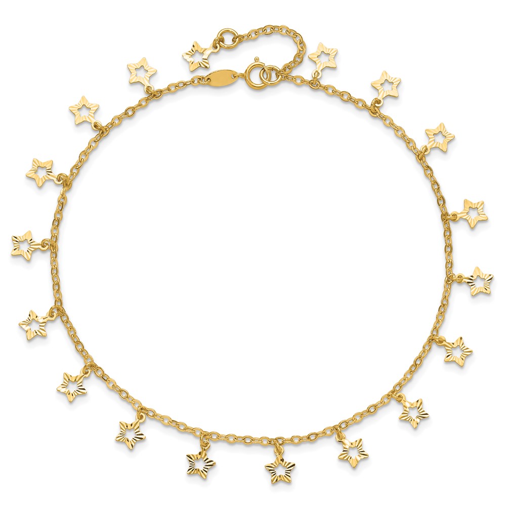 10k Polished Diamond-cut Star Dangles 5-Station Plus Extender – Total Anklet