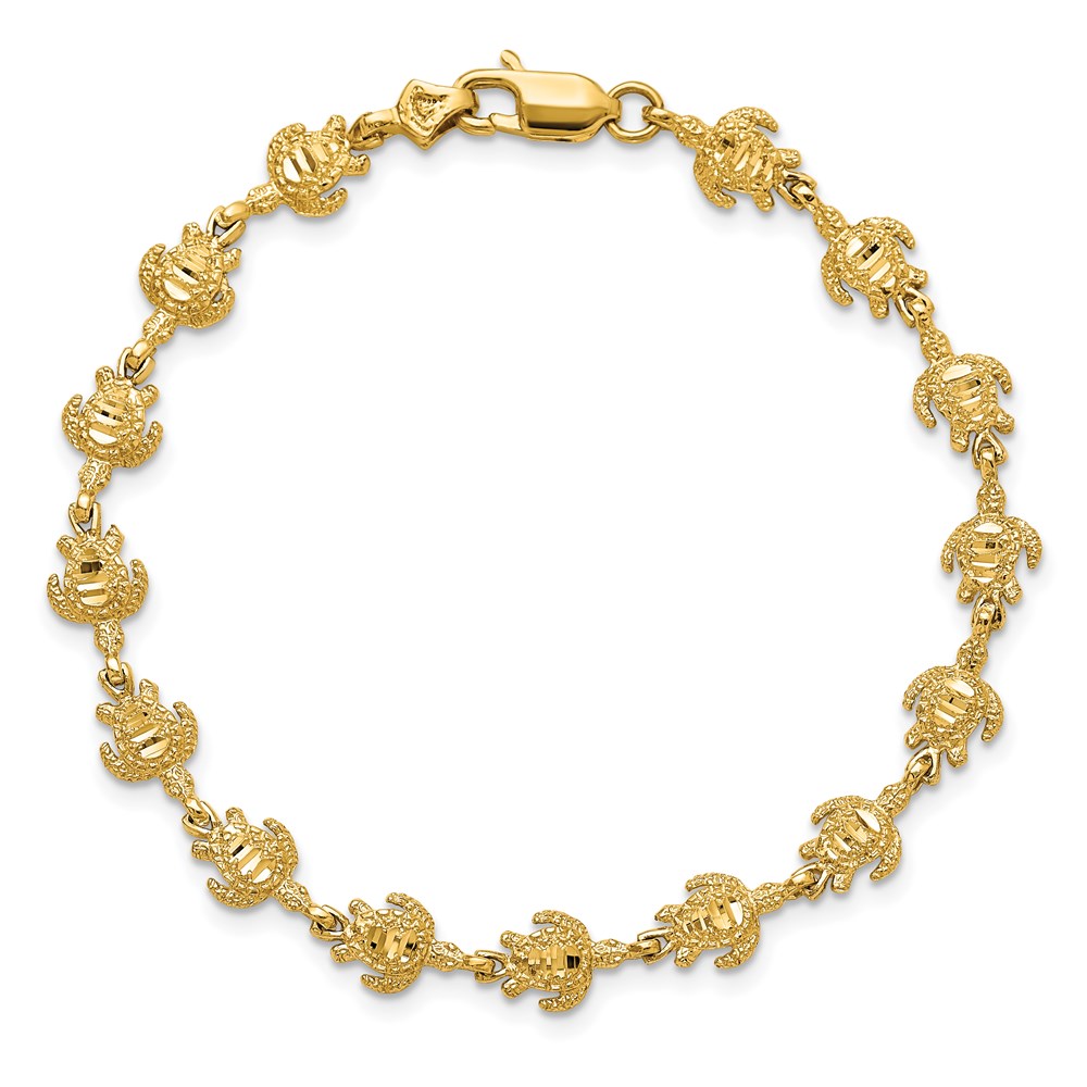 14K Polished and Textured Sea Life 7.25 inch Bracelet
