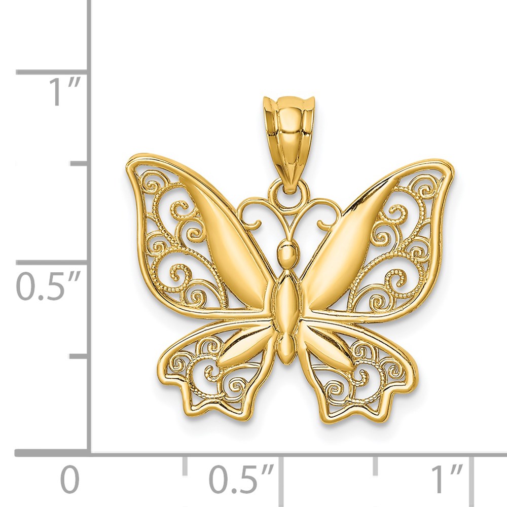14K Brushed and Diamond-cut Butterfly Pendant