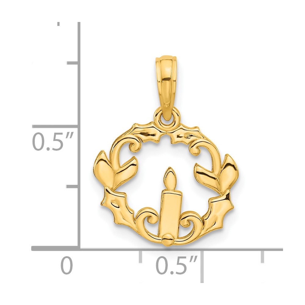 14k Polished Candle with Holly Circle Pendant