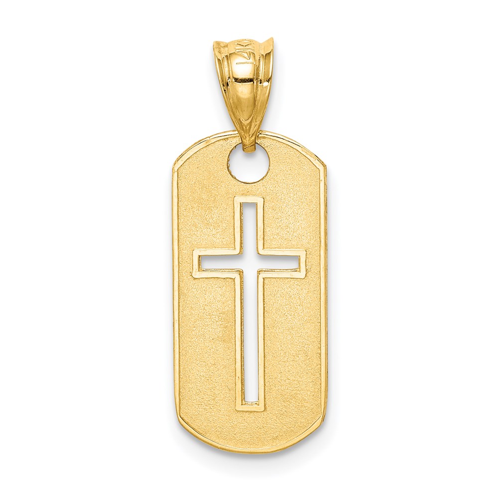 14k Polished Cross Cut-out Dog Tag Pendant
