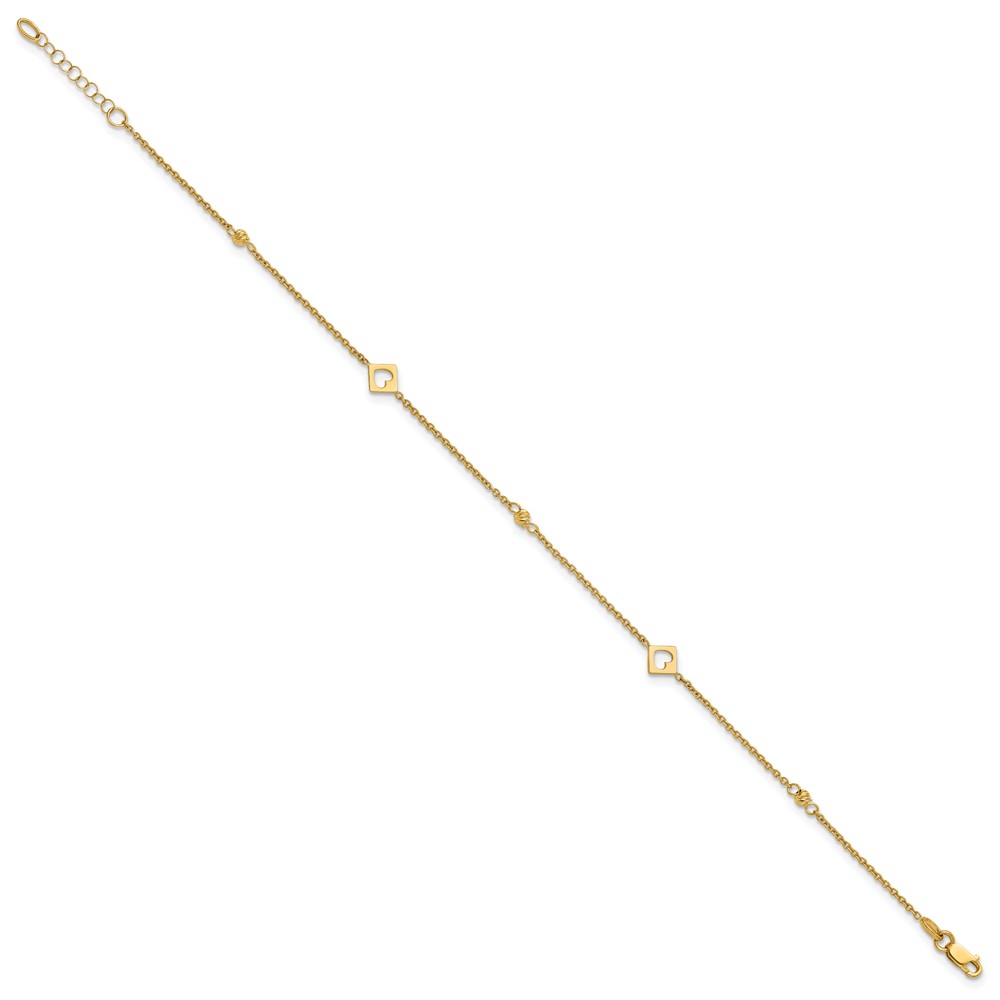 14k Polished Cut-out Hearts and Diamond-cut Beads Plus Extender – Total Anklet