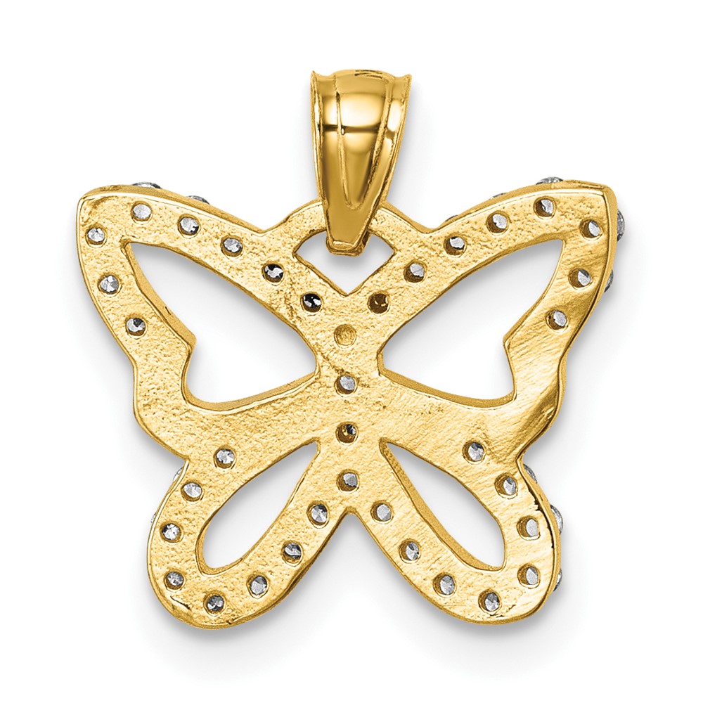 14k Polished CZ Cut Out Wing Butterfly Pendant
