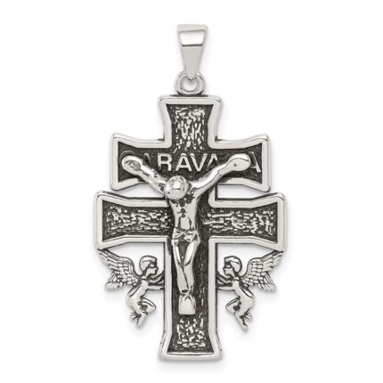 14k Polished and Textured Cara Vaca Crucifix Pendant