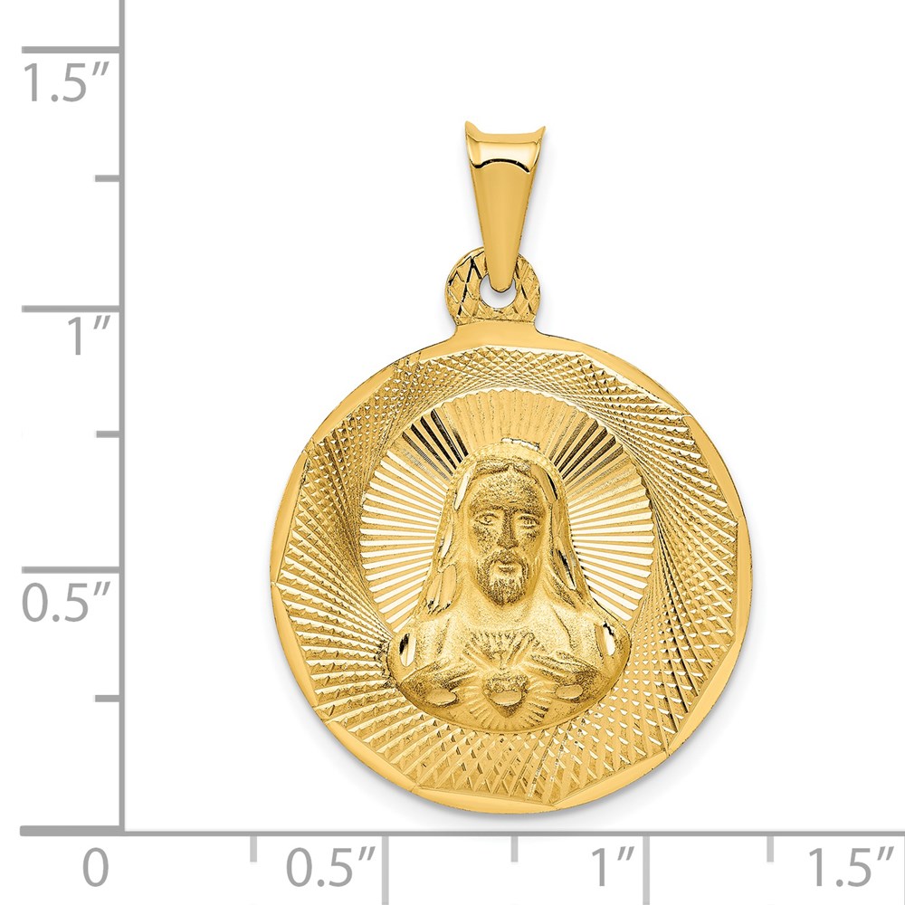 14K Polished Diamond-cut Large Solid Sagrado Corazon de Jesus Round Pendant