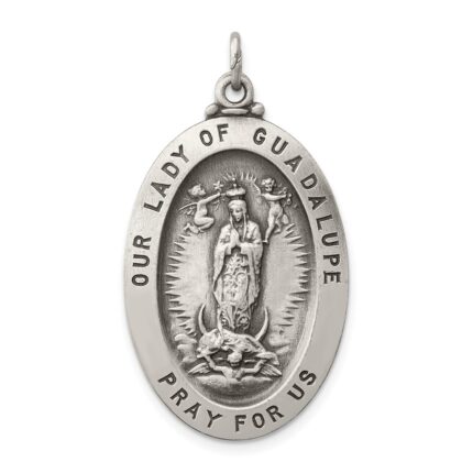 14K Polished Diamond-cut Solid Our Lady Of Guadalupe Oval Pendant