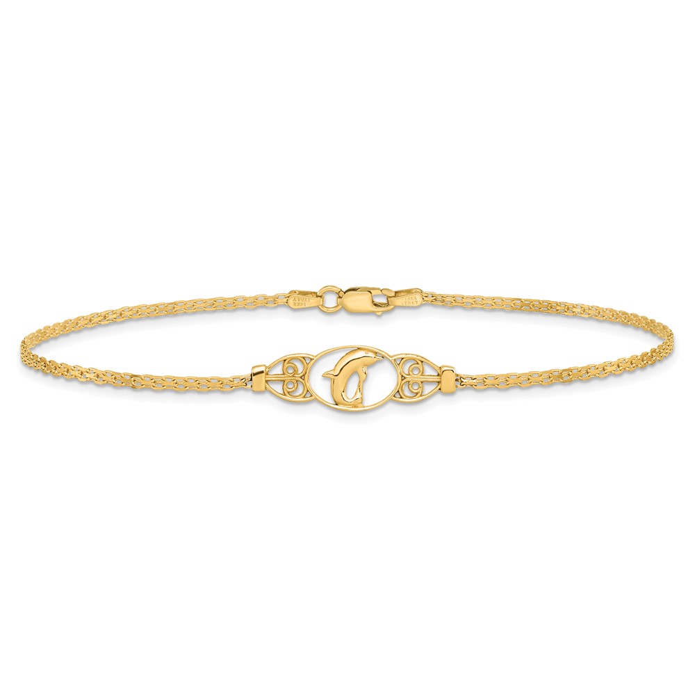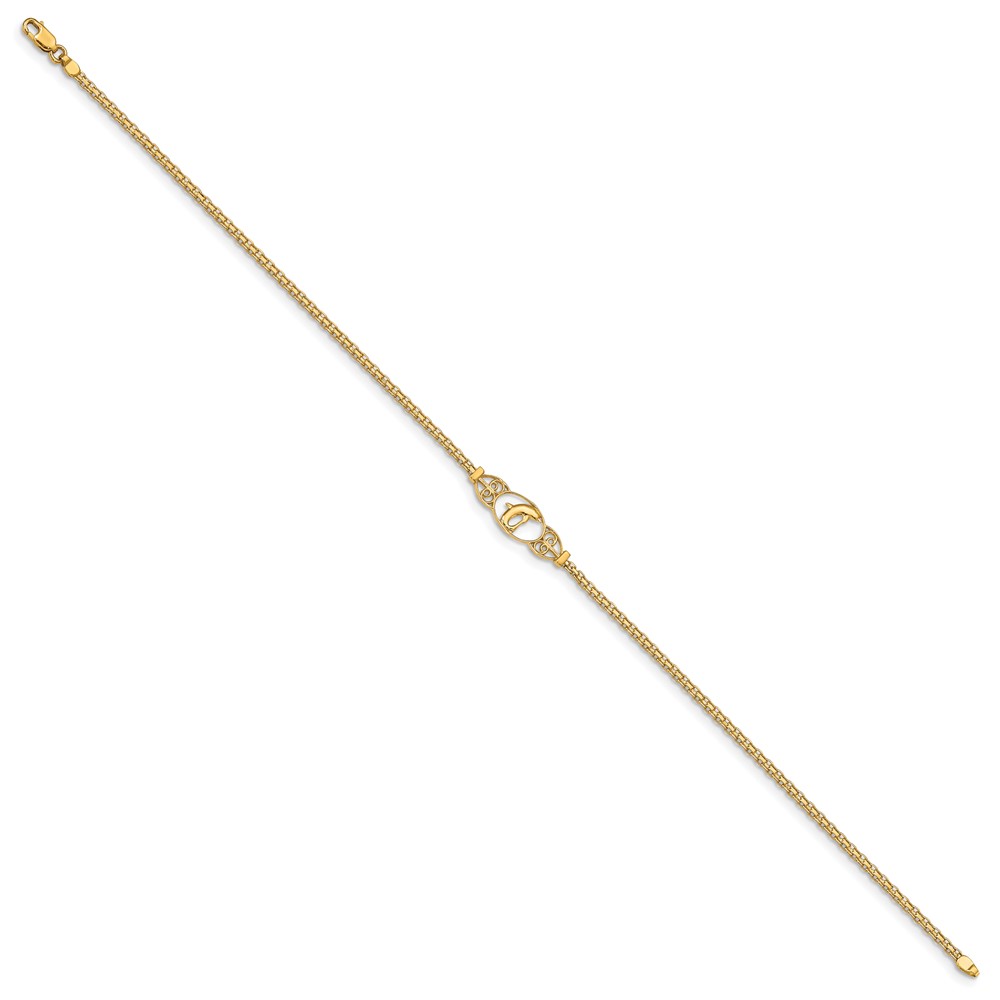 14k Polished Dolphin and Filigree Bismark Chain Anklet