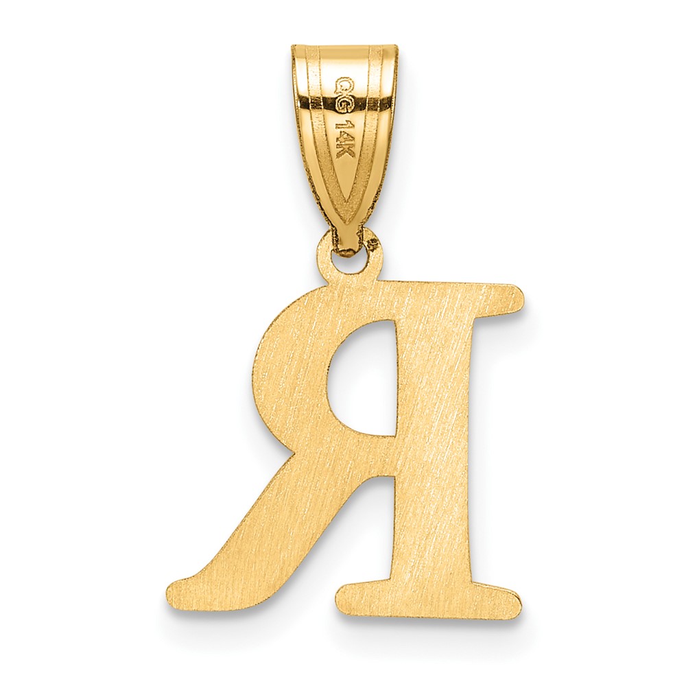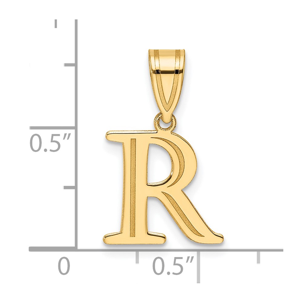 14k Polished Etched Letter R Initial Pendant