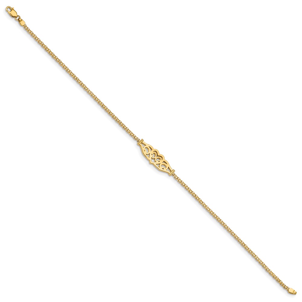 14k Polished Filigree Heart and Bismark Chain Anklet