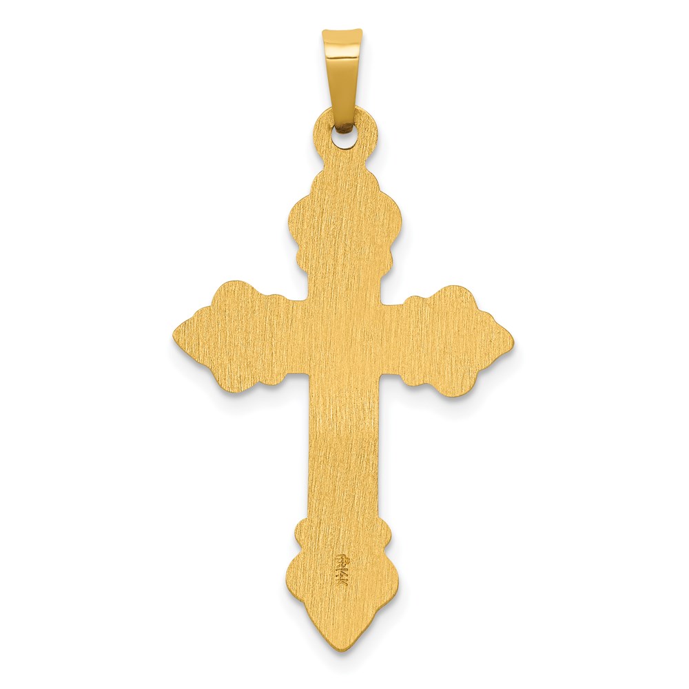 14k Brushed and Polished Fleur de Lis Cross Pendant