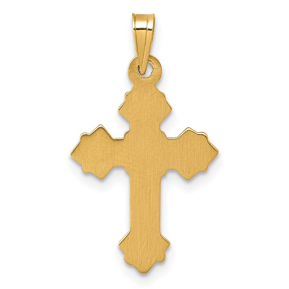 14k and White Rhodium 1/10 carat Diamond Fleur de Lis Cross Pendant