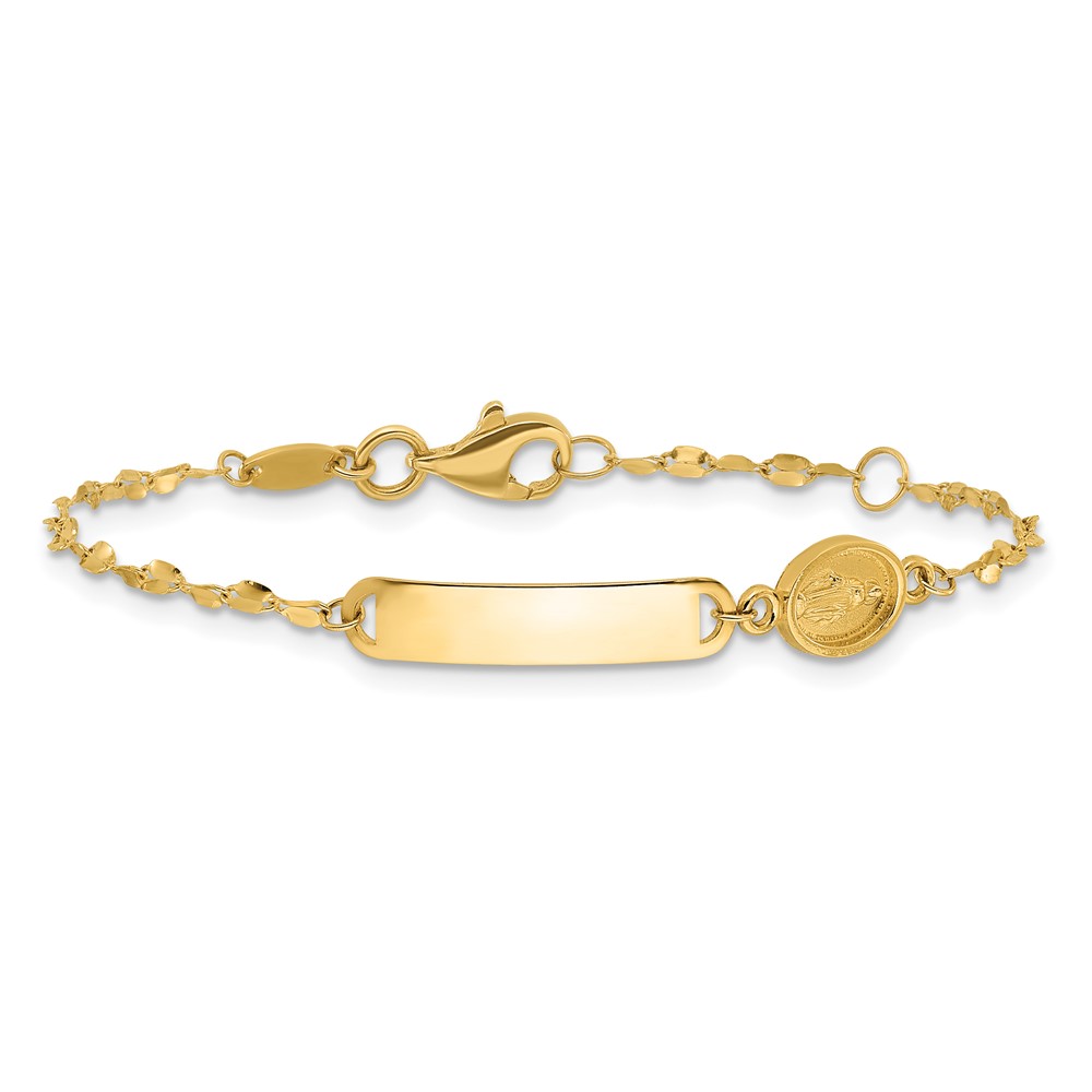 14K Polished Miraculous Medal and 19x4mm Plate 6 inch Baby/Child ID Bracelet