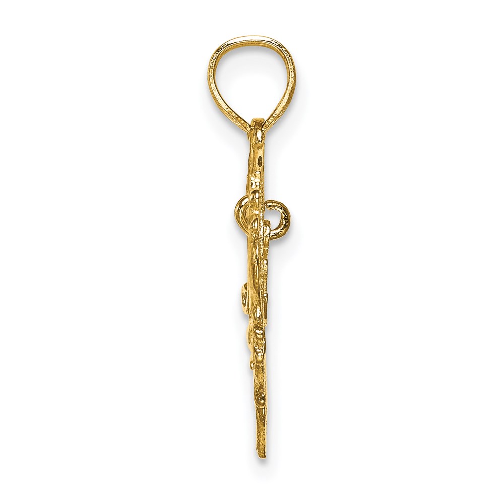 14K Polished MOM Dangle in Fancy Heart Pendant