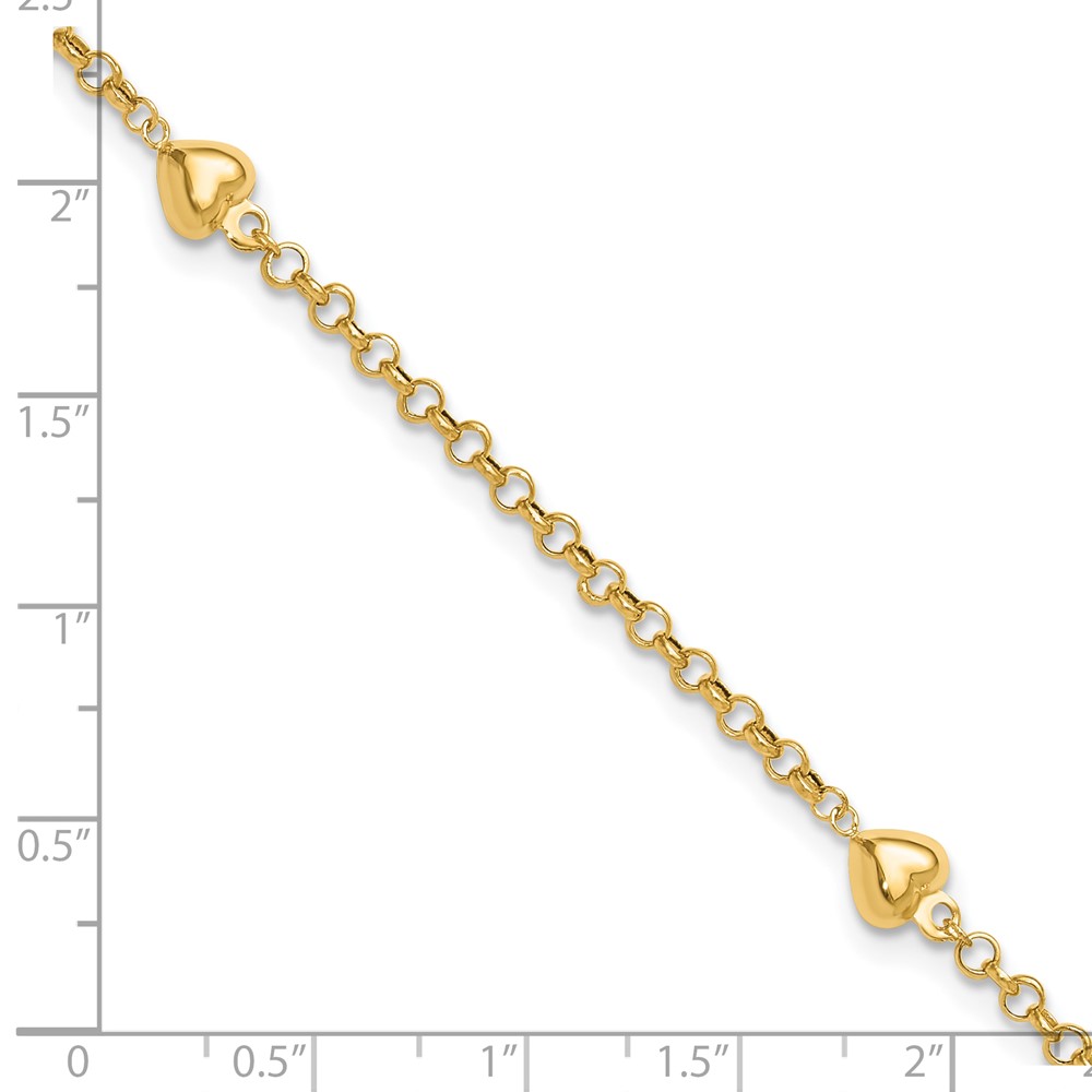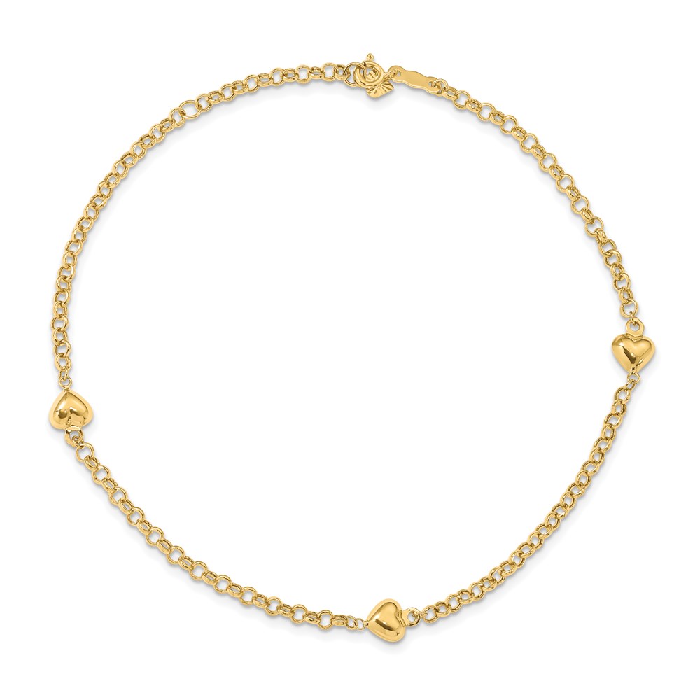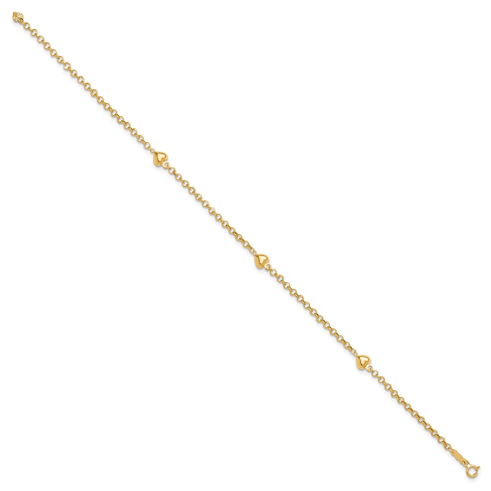 14k Two-tone Diamond-cut Triple Puffed Hearts Plus Extender - Total Anklet
