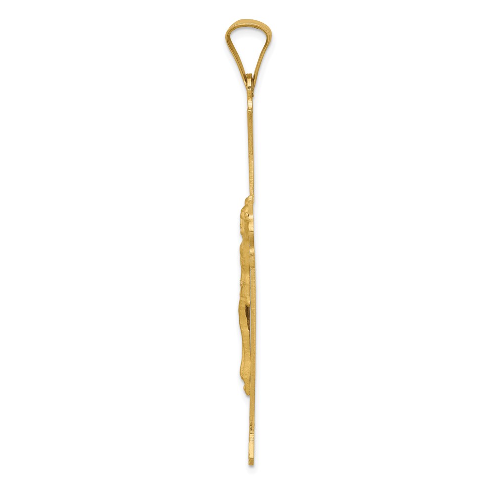 14k Polished Satin and Diamond-cut Crucifix Cross Pendant
