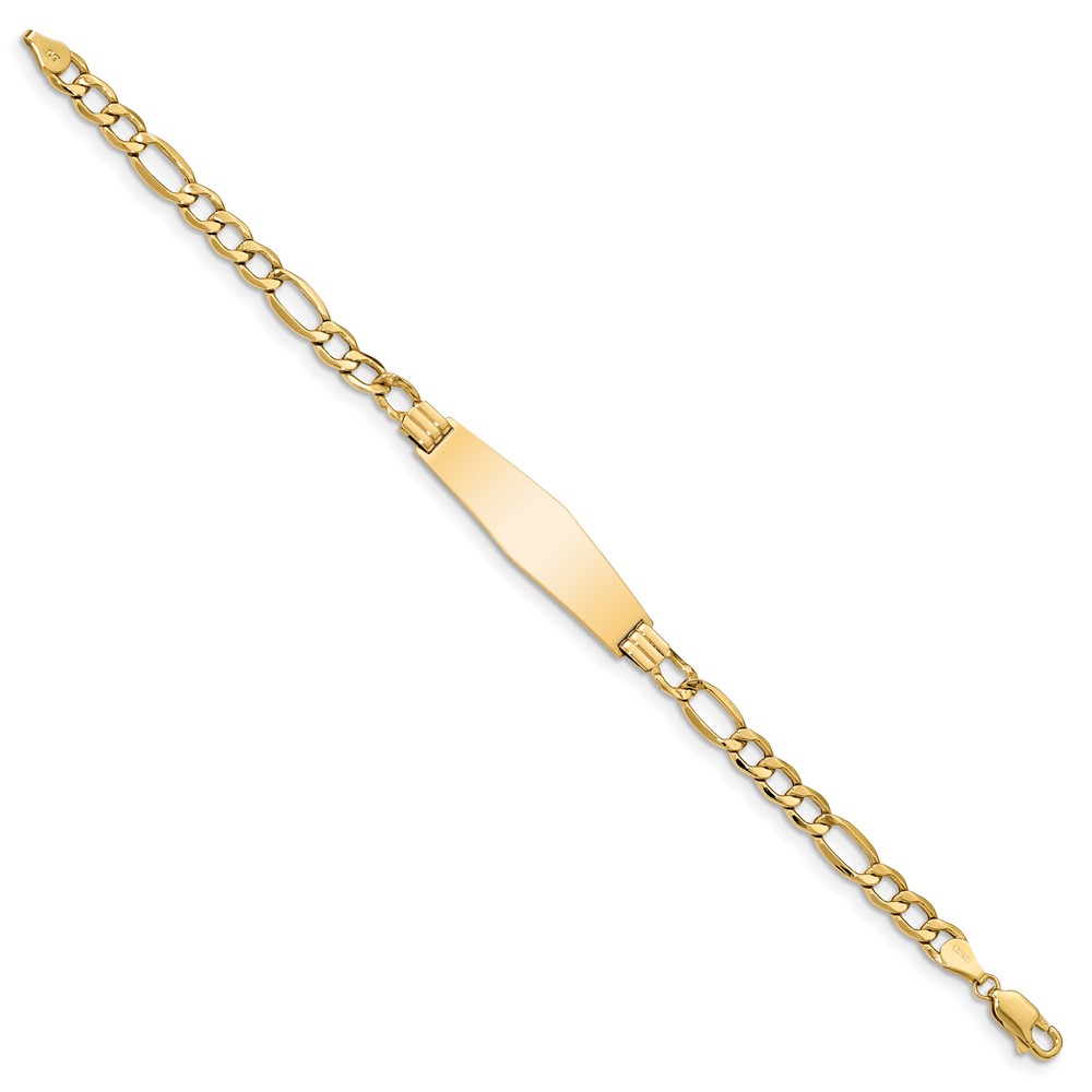 14k Polished Semi-Solid Chain/Solid Plate Figaro Link Soft Diamond Shape 34x10mm Plate 8 inch ID Bracelet