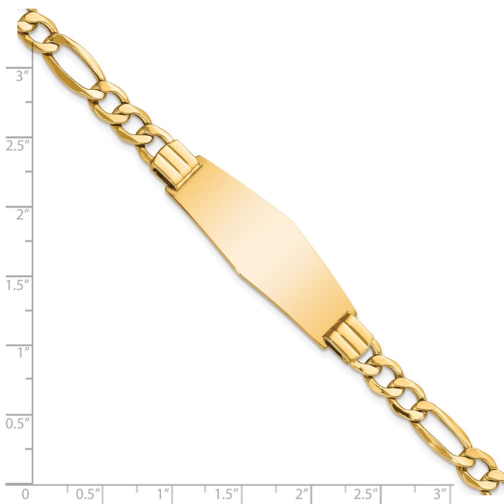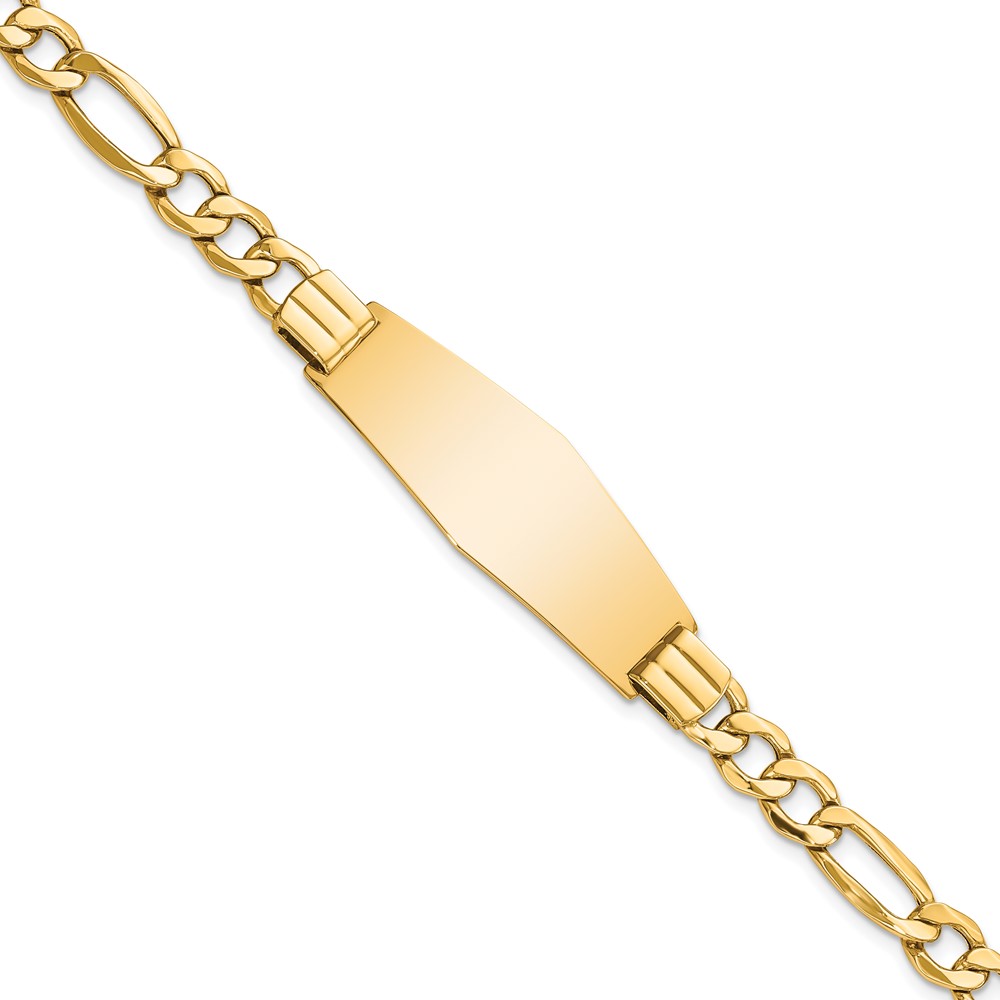 14k Polished Semi-Solid Chain/Solid Plate Figaro Link Soft Diamond Shape 39x14mm Plate 8 inch ID Bracelet