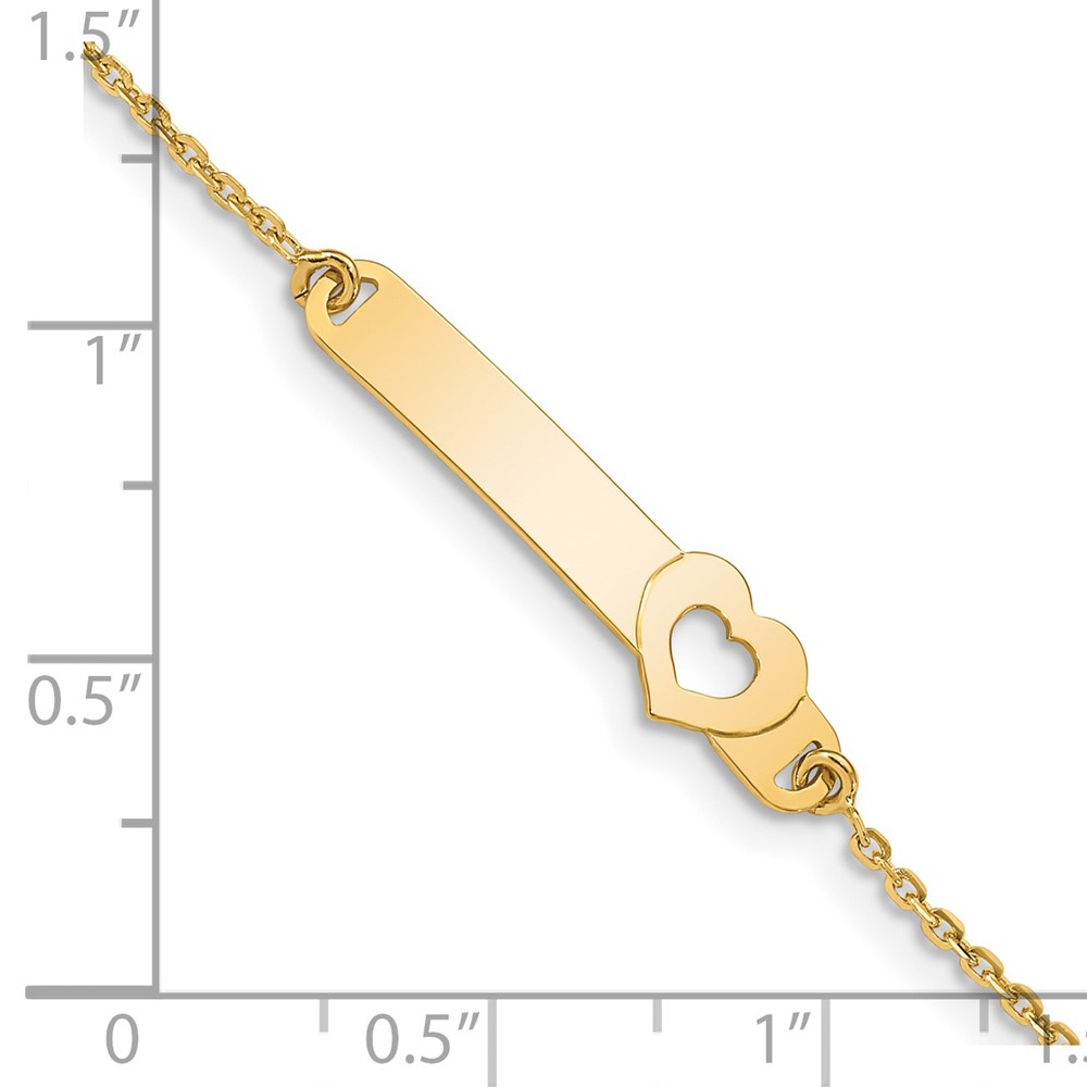 14K Polished Solid Chain/Solid Plate Cut-out Heart 27.7×6.5mm Plate 5.Baby/Child ID Bracelet with Extender
