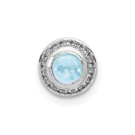 14k White Gold Diamond and 4mm Round Cabochon Aquamarine Halo Chain Slide