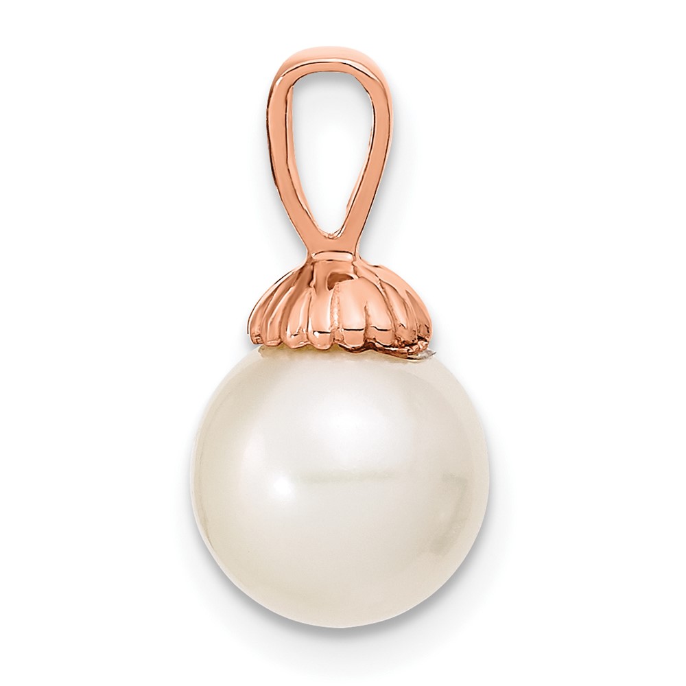 14K Rose Gold 8-9mm White Round Freshwater Cultured Pearl Pendant